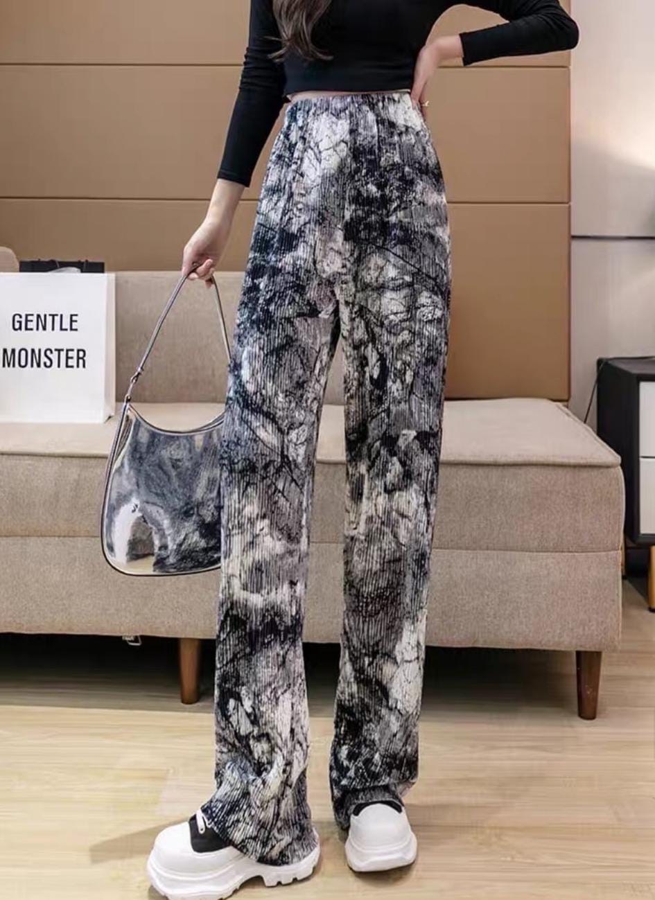 Wide-leg Marble Print Pants – بنطلون وايد ليج بطبعة دخان